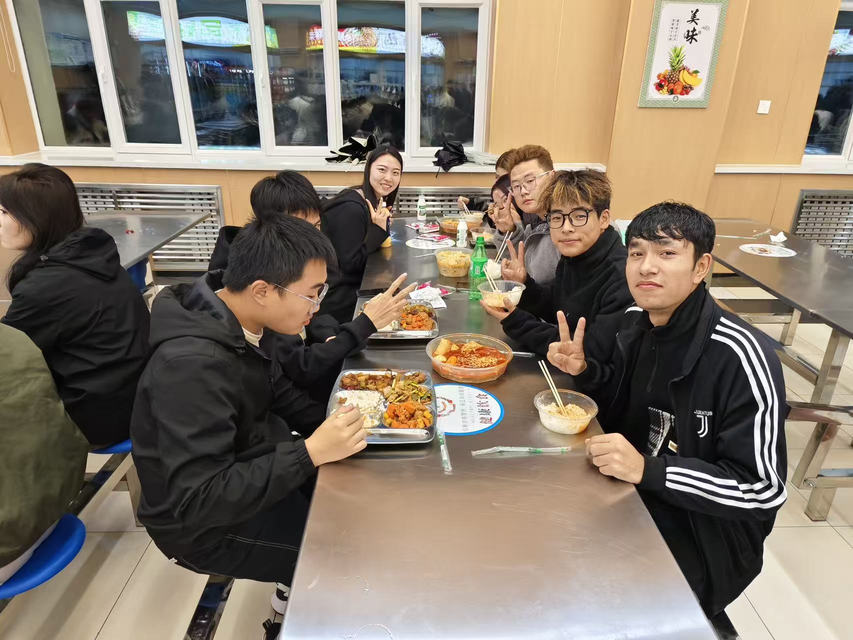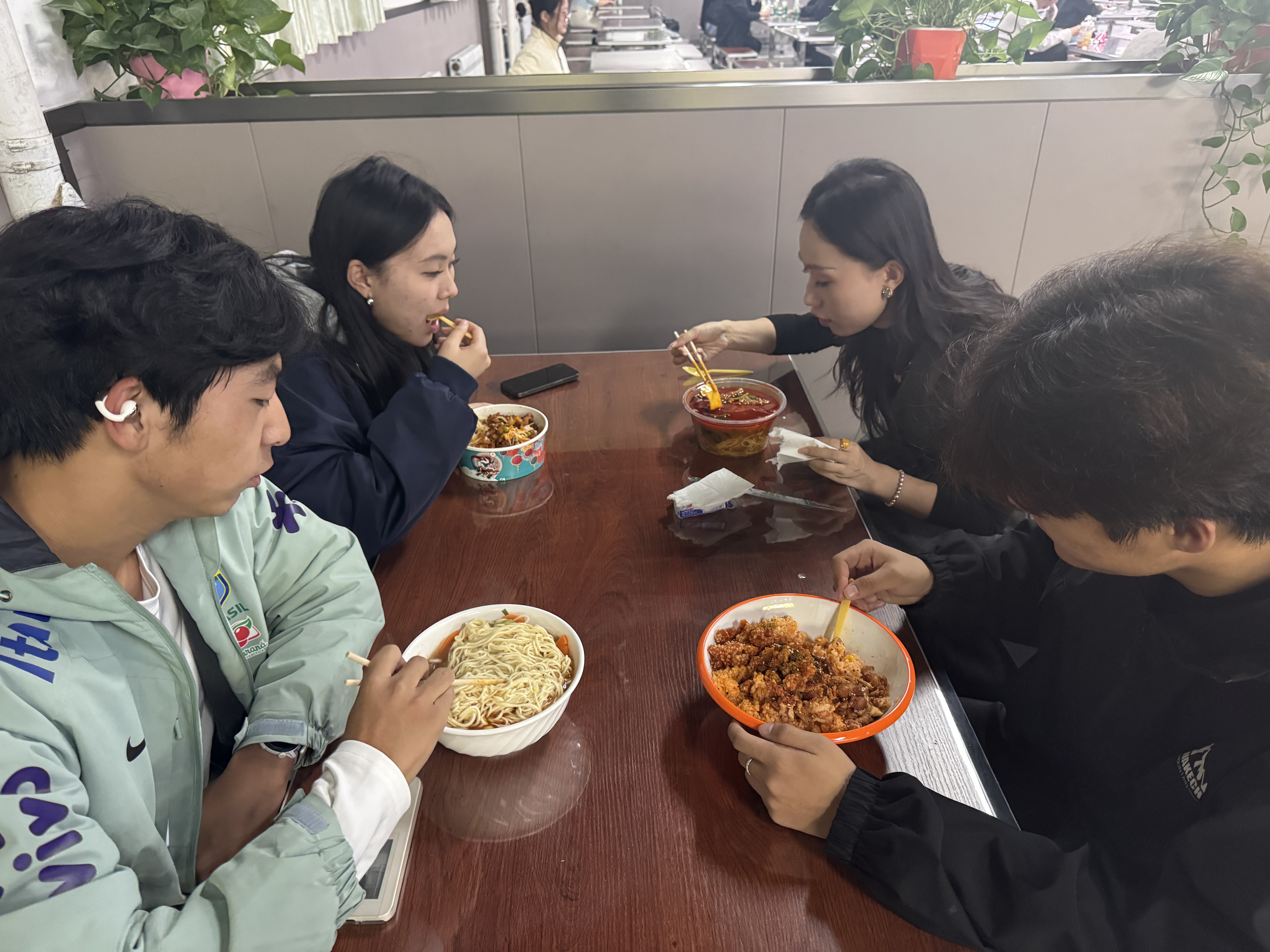 除了宿舍走访,老师们还走进食堂,与学生围坐一桌共餐,真正融入学生日常生活。食堂内饭菜香气萦绕,老师们主动为学生添汤,边吃边聊,不只是询问饭菜口感、温度,还细致关心窗口排队时长、菜品种类是否多样。听到学生说“希望增加清淡菜品”“午餐高峰排队久”,老师们向食堂工作人员沟通反馈。轻松的就餐氛围里,师生唠着家常、聊起课程,少了距离感,多了亲切感,让学生在日常饮食中也感受到细致关怀。